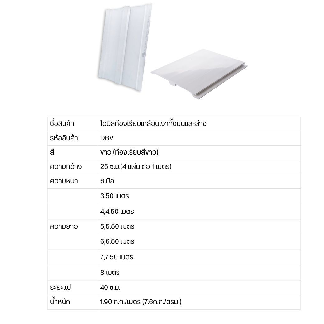 แผ่นหลังคาไวนิลท้องเรียบเคลือบเงา สีขาว